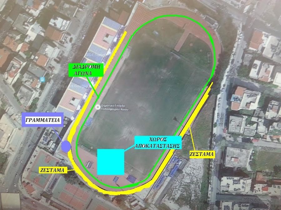 - Το ΖΕΣΤΑΜΑ θα πραγματοποιηθεί στις 2 εξωτερικές διαδρομές του Σταδίου για την διευκόλυνση των αθλητών που θα αγωνίζονται παράλληλα και παρακαλούμε για τη βοήθεια σας στην αυστηρή τήρηση της διαδικασίας.